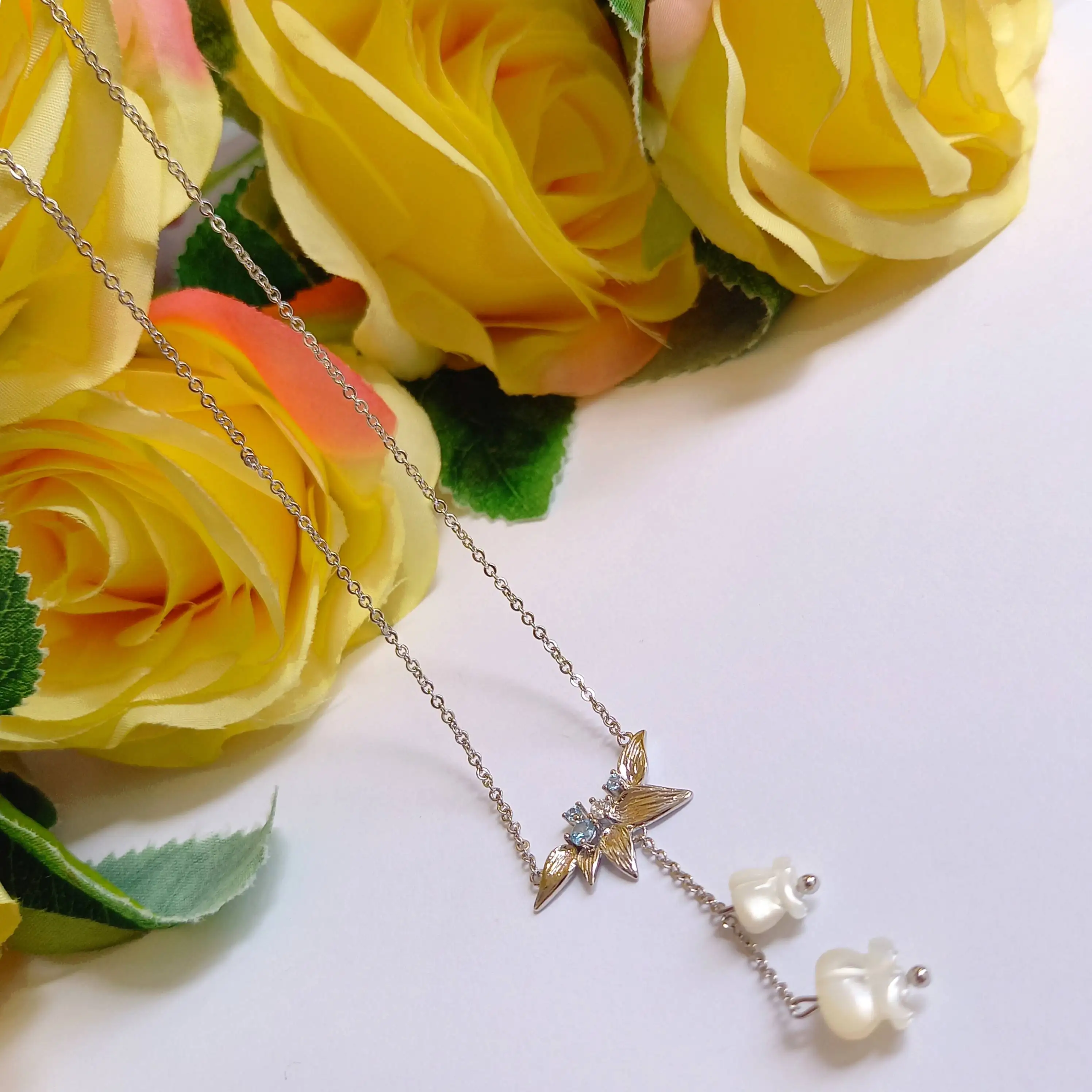 Очень красивая подвеска. Интересная задумка, сделана в форме лепестков ландыша украшенных камнями, на цепочке ниже два бутона. Камни сверкают при попадании прямого света. Метал стерлинговое серебро S925 пробы. Можно заказать в комплекте с кольцом в этом же стиле. Отличный вариант для подарка. Все украшения которые я заказывала в этом магазине сделаны очень качественно. Доставка быстрая, всего две недели. Продавец быстро отправил украшения после оформления заказа. Общительный и любезный.