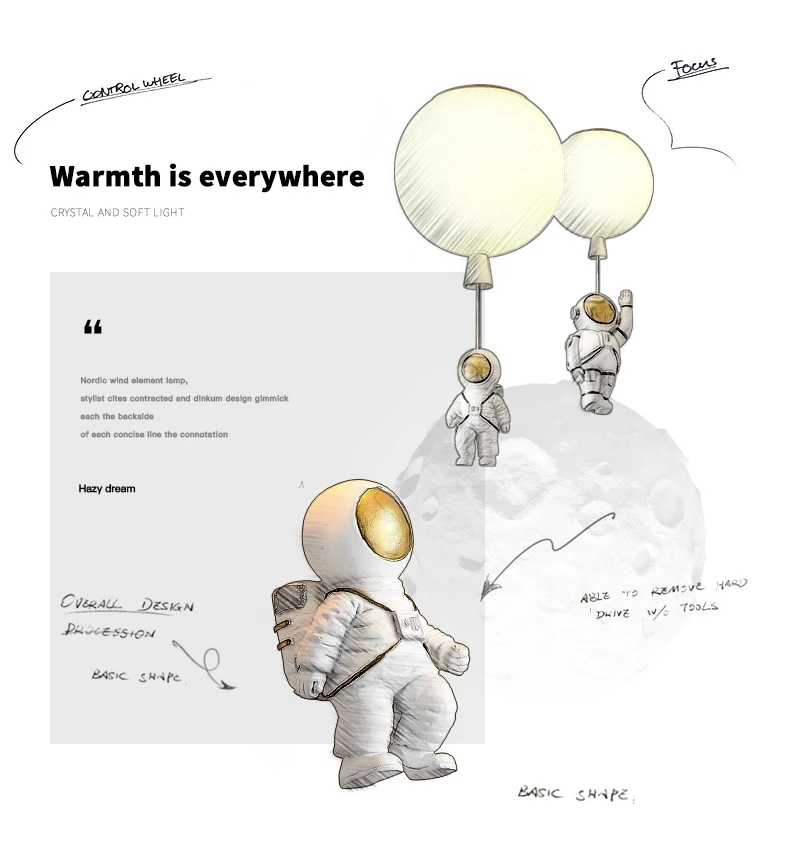 Потолочный светильник в скандинавском стиле с изображением астронав...