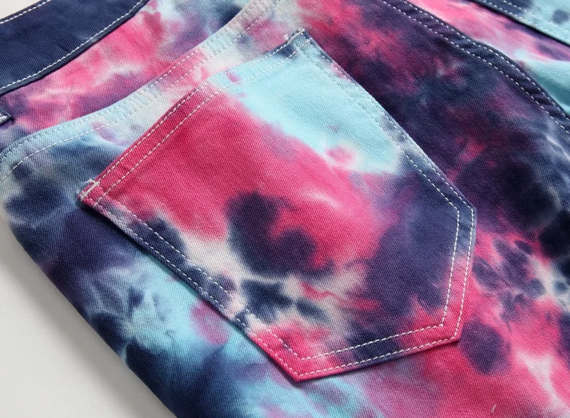 Мужские джинсы стрейч Tie and Dye, модные забавные брюки с фиолетовым принтом