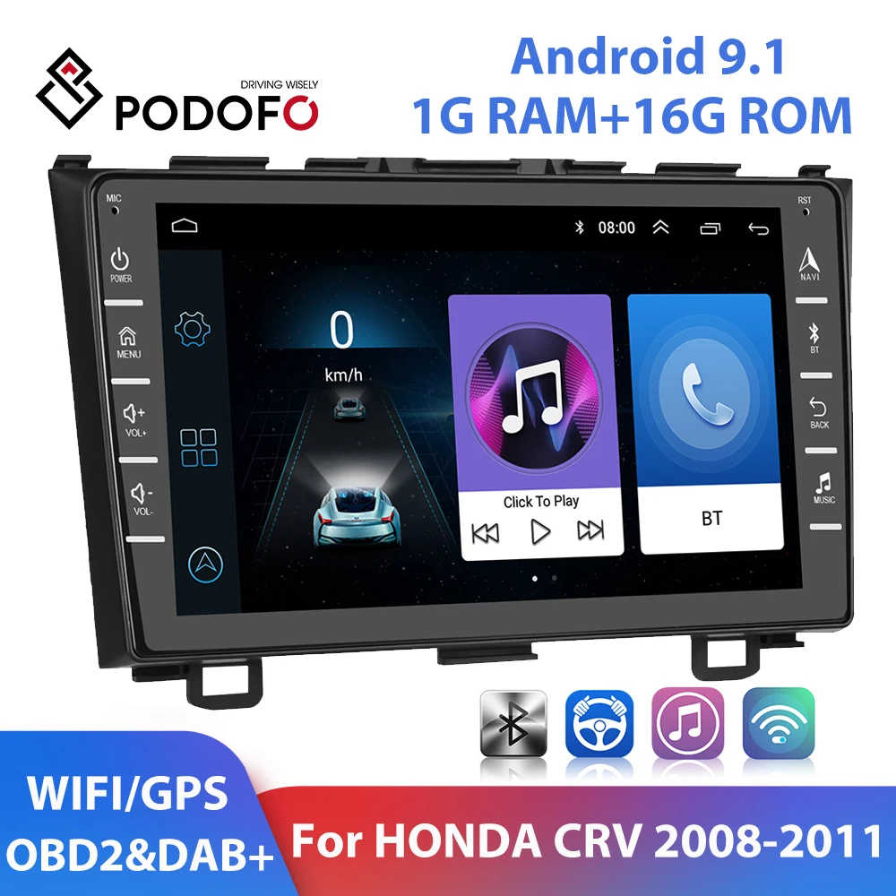 Podofo 2 Din Android 9,1 автомобиль радио 8 "2din WI-FI GPS USB автомобильный мультимедийный плеер Авто Аудио плеер для Honda CR-V 2008 - 2011