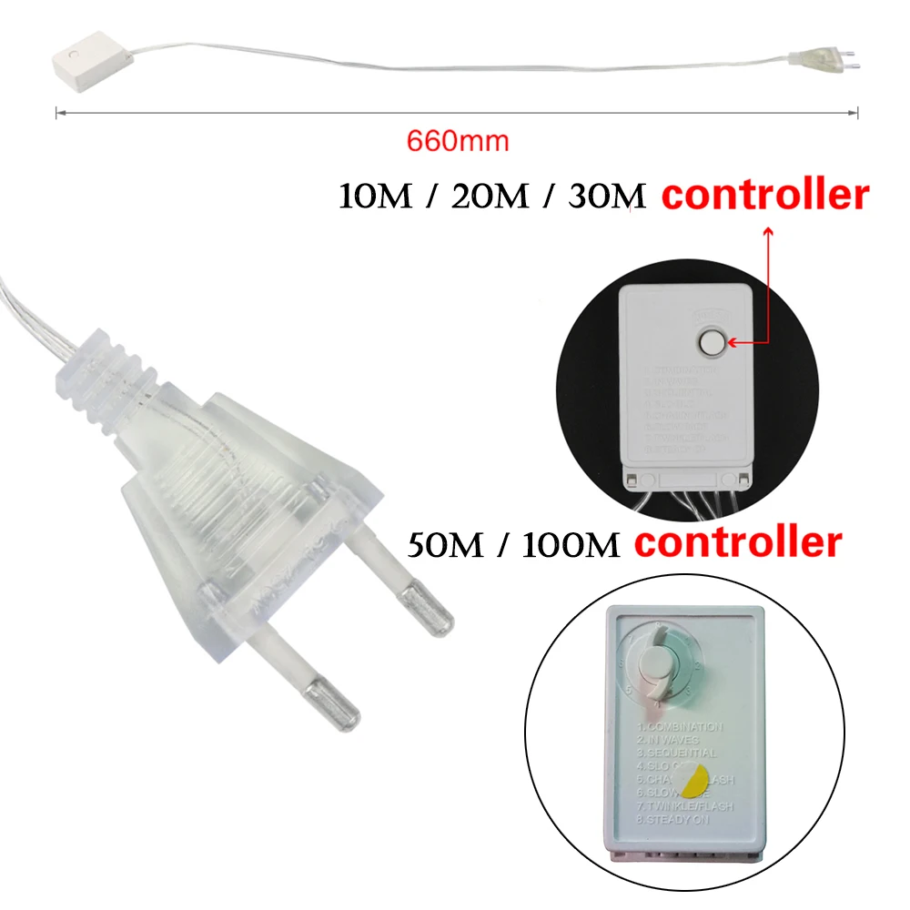 Примечание: светодиодный светильник 20 м с хвостовой вилкой, может быть подключен к 100 метрам вместе (5 шт. вместе), 30 м, 50 м и 100 м без хвостовой вилки.