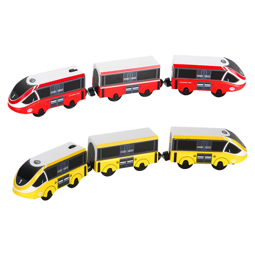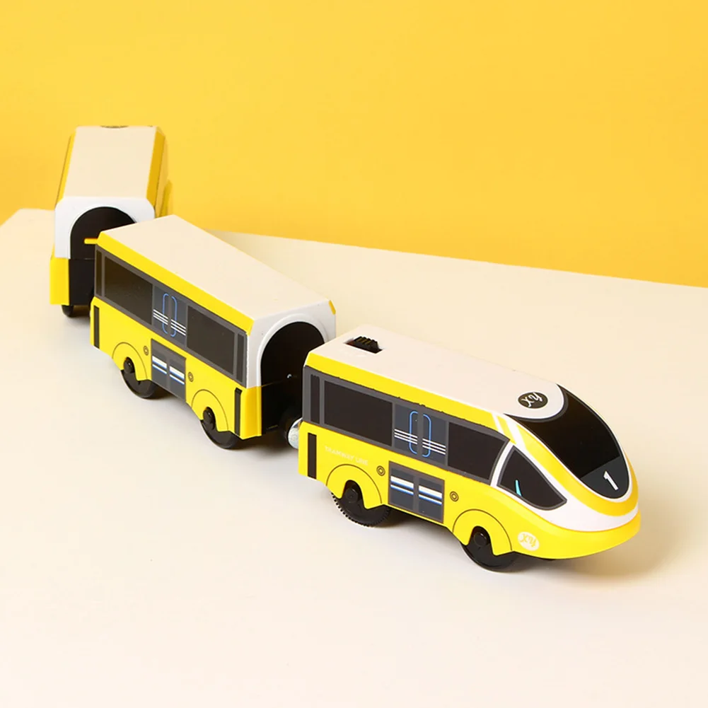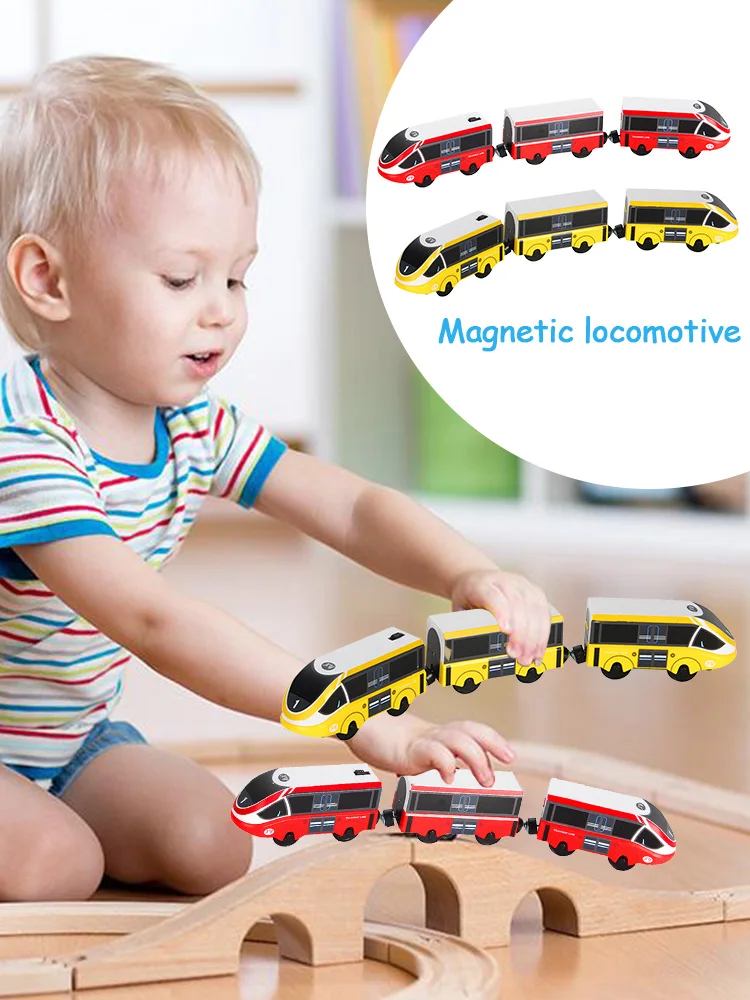 Железнодорожный локомотив с магнитным соединением, совместимый с деревянной дорожкой, маленький поезд, магнитная игрушка-рельс, подарок для детей