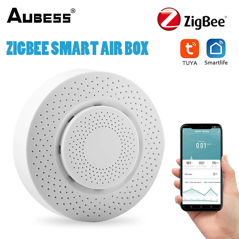Умный воздушный бокс ZIGBEE 3,0, домашняя Автоматизация, датчик влажности углекислого газа, датчик температуры VOC, детектор с сигнализацией TuyaSmartLife