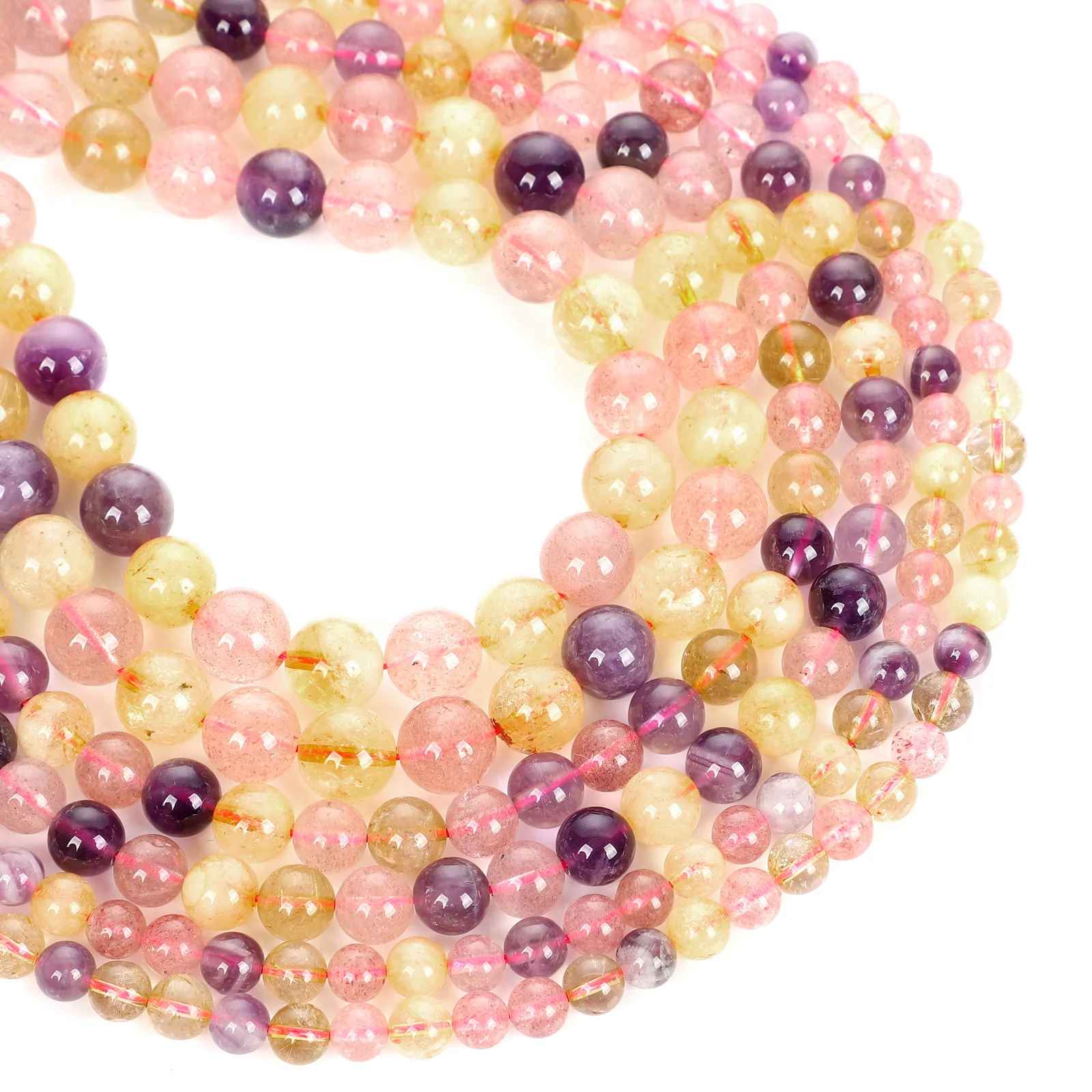 Бусины из натурального камня, аметист, кварц, круглые бусины россып...