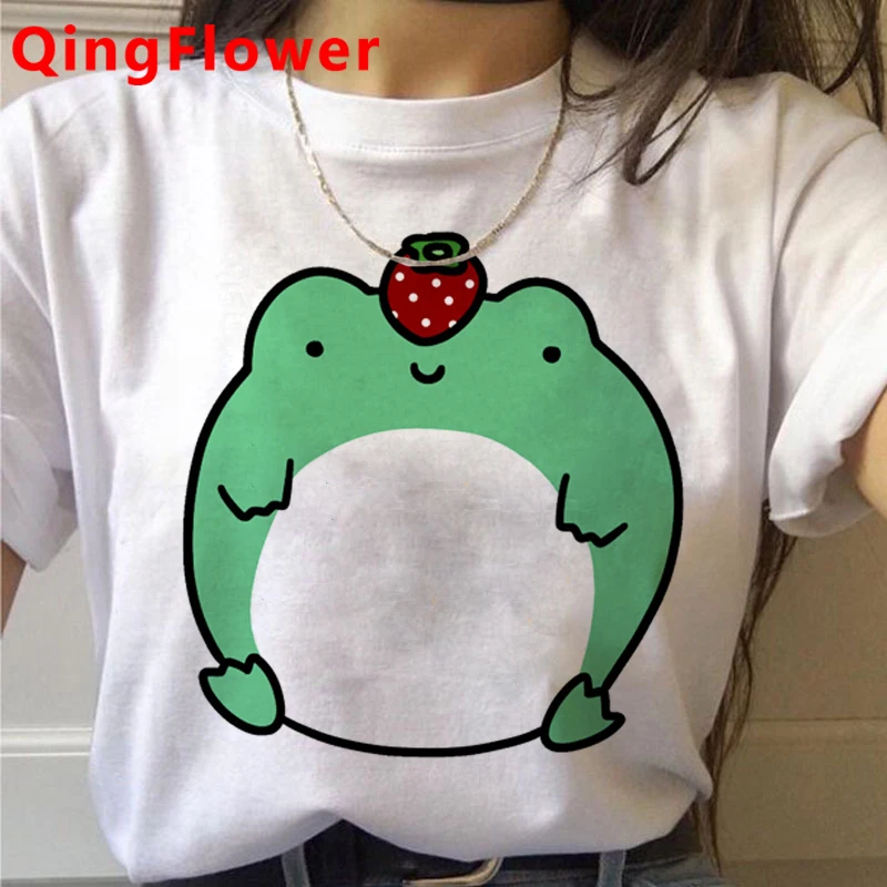 Футболка женская Kawaii с рисунком лягушки, одежда tumblr