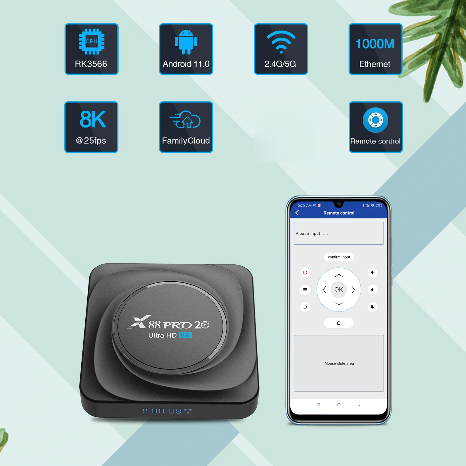 ТВ-приставка X88 PRO 20 на Android 11, 8 + 12864 ГБ, Rockchip RK3566, 4 + 32 ГБ