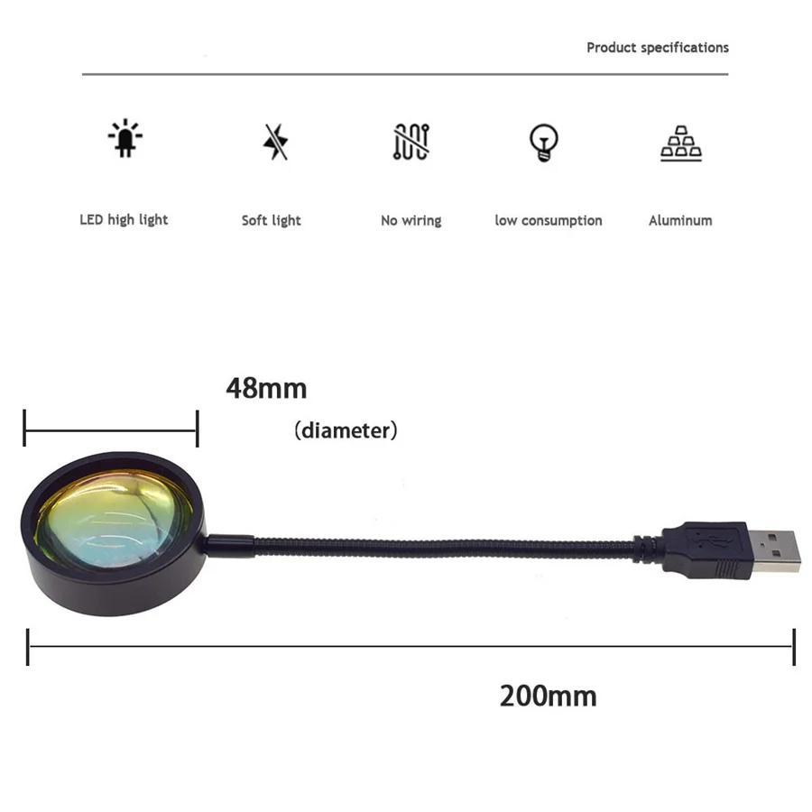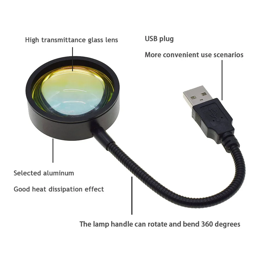 Радужная проекционная лампа с USB-разъемом и закатом, настольная ла...