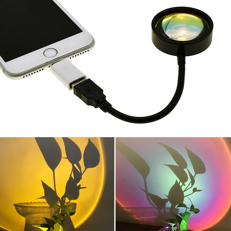 Лампа с проекцией заката, USB, светодиодная лампа для декора, с адаптером для мобильного телефона, для TikTok