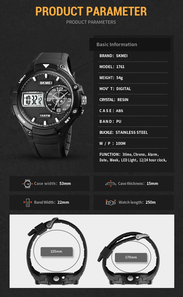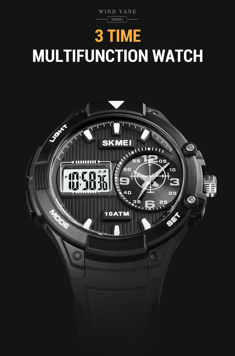 SKMEI Dual Time 10ATM водонепроницаемые часы с большим циферблатом ...