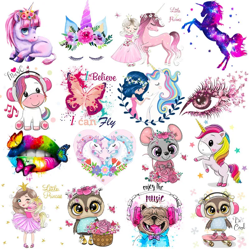 Термонаклейки с милыми животными, виниловые термонаклейки с единоро...