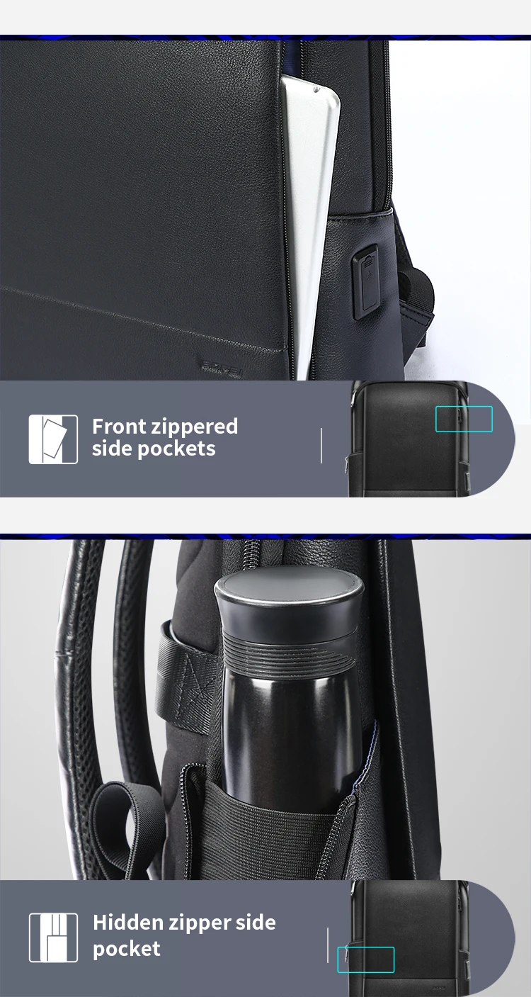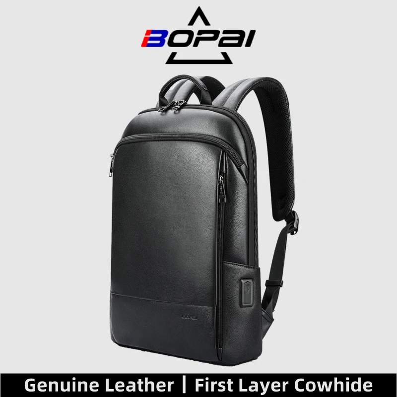 Мужской рюкзак из 100% натуральной воловьей кожи BOPAI, черный деловой рюкзак с отделением для ноутбука, USB-зарядкой и защитой от кражи, для учебы,