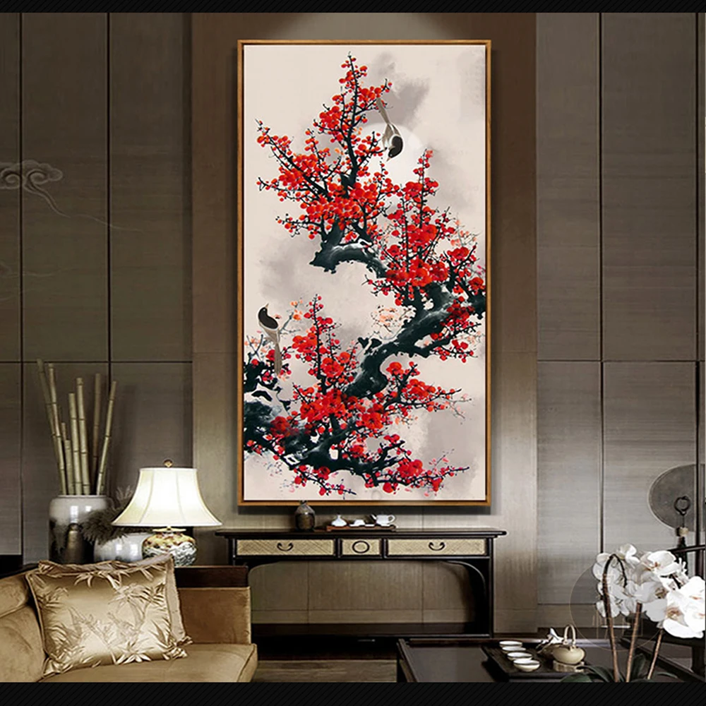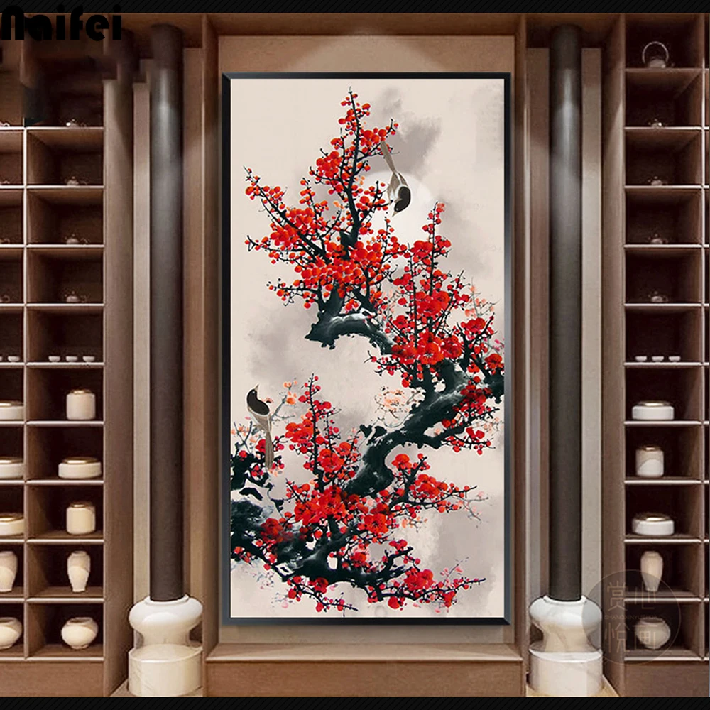 5d алмазная картина полностью квадратная/круглая дрель для гостиной в китайском стиле Красная слива цветок крыльцо вертикальная версия Алмазная вышивка