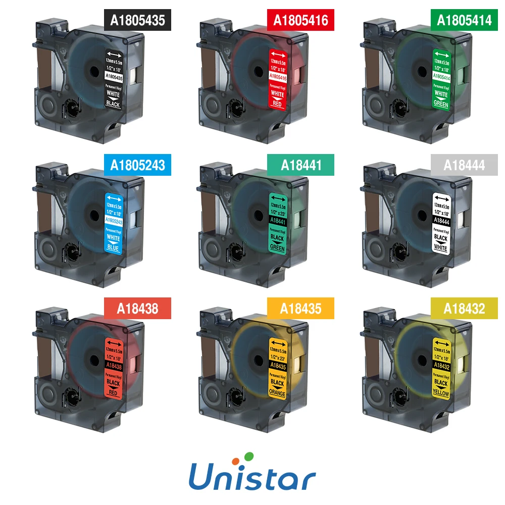 Производитель промышленных этикеток Unistar, 10 упаковок, совместимых с Dymo Rhino 18444, виниловая кассета для DYMO Rhino 5200,4200,6000