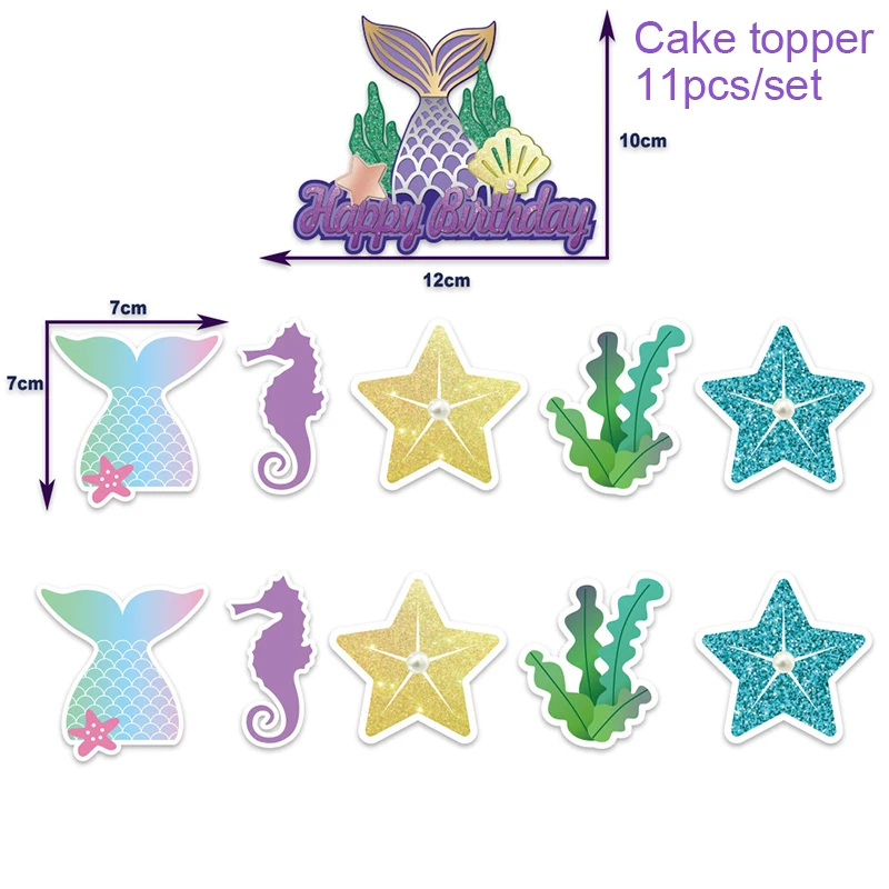Русалочка, баннер для дня рождения, воздушные шары с конфетти, топперы для торта на день рождения