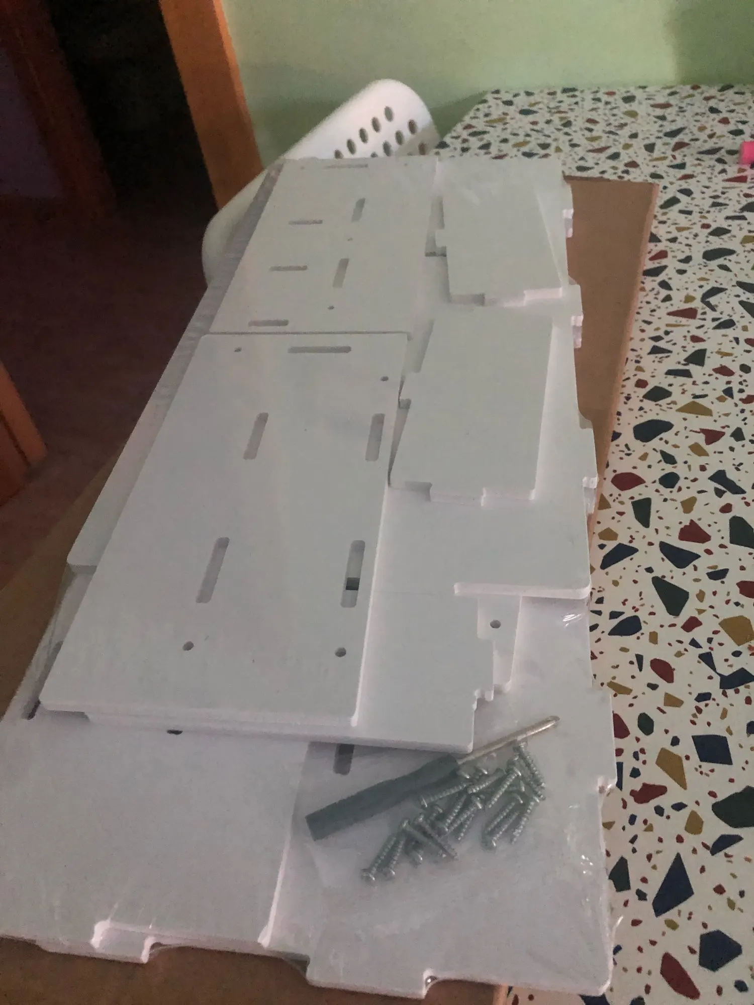 Заявлено, что полка деревянная, я на свою беду не прочитала отзывы, а там все написано. Уважаемые покупатели, проходите мимо этого продавца, т.к. кладёт вместо деревянной полки, полку из очень хлипкого дешёвого пластика, который при сборке начинает трескаться. Я открыла спор и вернула все деньги, но после вмешательства Алиэкспресс.
