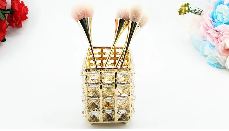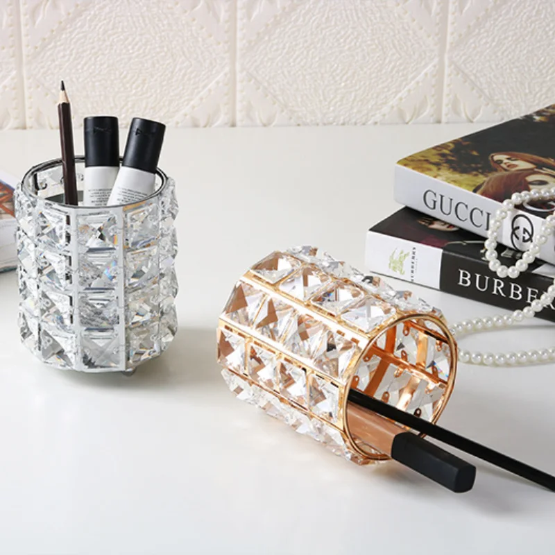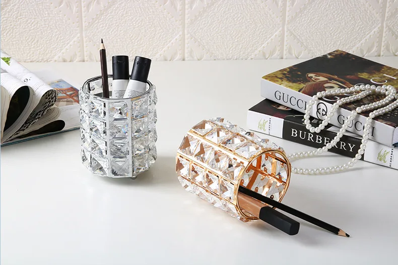 Круглая, квадратная, с украшением в виде кристаллов стеклянный держатель для ручек металлические украшения класса люкс для офиса дома гостиная для хранения канцтоваров из поставки кристальная ручка-держатель