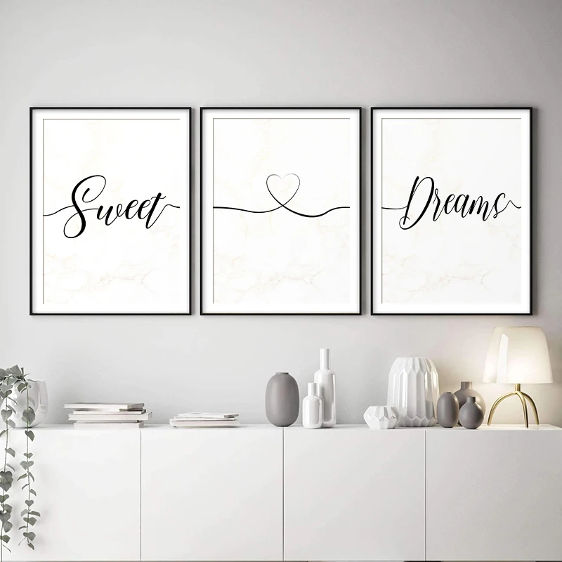 Черный, белый цвет сладкий сон Холст плакат с текстом футболка с надписью Nordic Минималистский настенная живопись Современная отделка спален картина