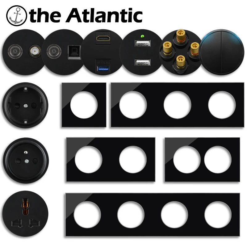 Французская розетка для розеток L1, разъем USB RJ45, совместимый с HDMI, рамка модуля, Бесплатная комбинация, черное стекло, Испания