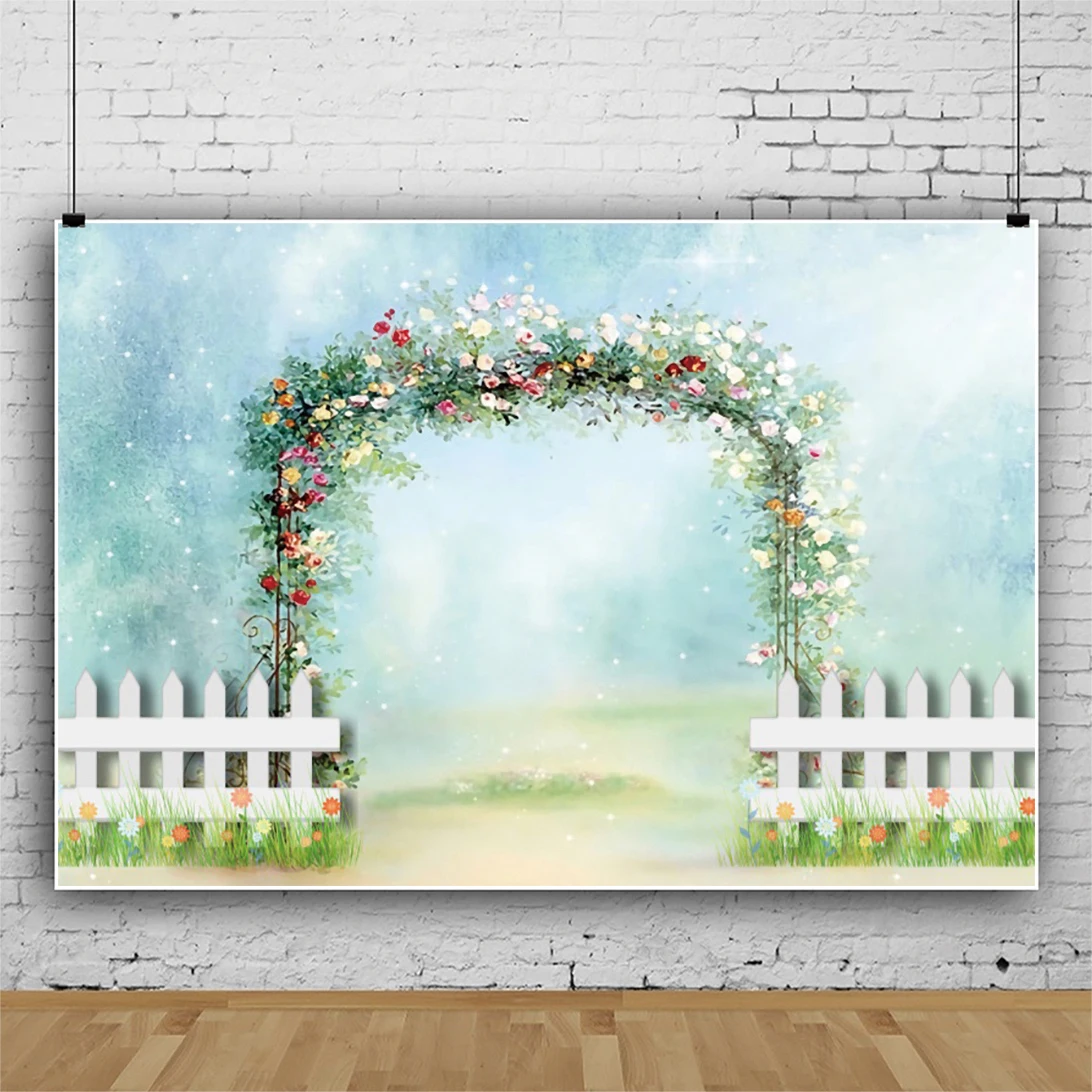 Laeacco мечтательный сад фон для фотографии деревянный забор Цветущий цветок арочная дверь детвечерние фото фон фотостудия