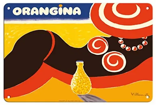 Винтажный рекламный постер Orangina, Пляжное бикини со сверкающей содовой