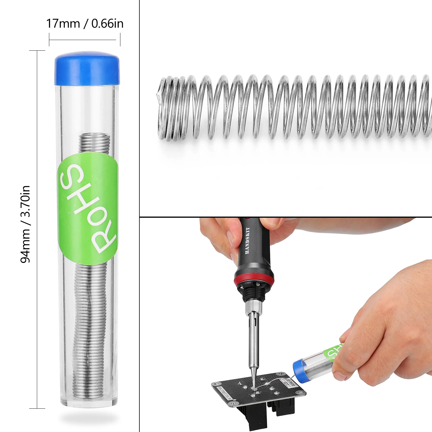 Изготовлен из высококачественного материала, практичный, простой в эксплуатации и использовании, имеет длительный срок службы. Особенности:Спите автоматически через 15 минут, чтобы защитить срок службы головки паяльника.Температура достигает 480 ℃ за 1 минуту.Интеллектуальная управляемая Встроенная ПИД-система.Диапазон 180-480 ℃ (356-896 ℃) для регулировки температуры кнопкой. Легко работать.Используйте светодиодный дисплей.4 провода PTC термостатический керамический паяльник ядро.Двойной температурный режим отображения ℃ и ℉.Компенсация температуры ± 99 ℃ (210 ℉). Характеристики:Основной Материал: АБС-пластикЦвет: серый + черныйМощность: 90 ВтДиапазон температур: 180-480 ℃Стабильность температуры: ± 2 ℃Диапазон смещения температуры: ± 99 ℃Единица измерения температуры: ℃ / ℉Нагреватель: четырехъядерный керамический нагреватель PTCДисплей: синий светодиодныйОбщая длина паяльника: 280 мм/11,0 дюймаВес товара: 166 г/5,9 унцииРазмер посылка: 315*60*50 мм/12,4*2,4 * 2.0inПосылка Вес: 290 г/10,2 унции Упаковочный лист:1 * паяльник1 * Защитная термостойкая крышка5 * головка паяльника1 * паяльная проволока1 * подставка с губкой1 * Руководство пользователя