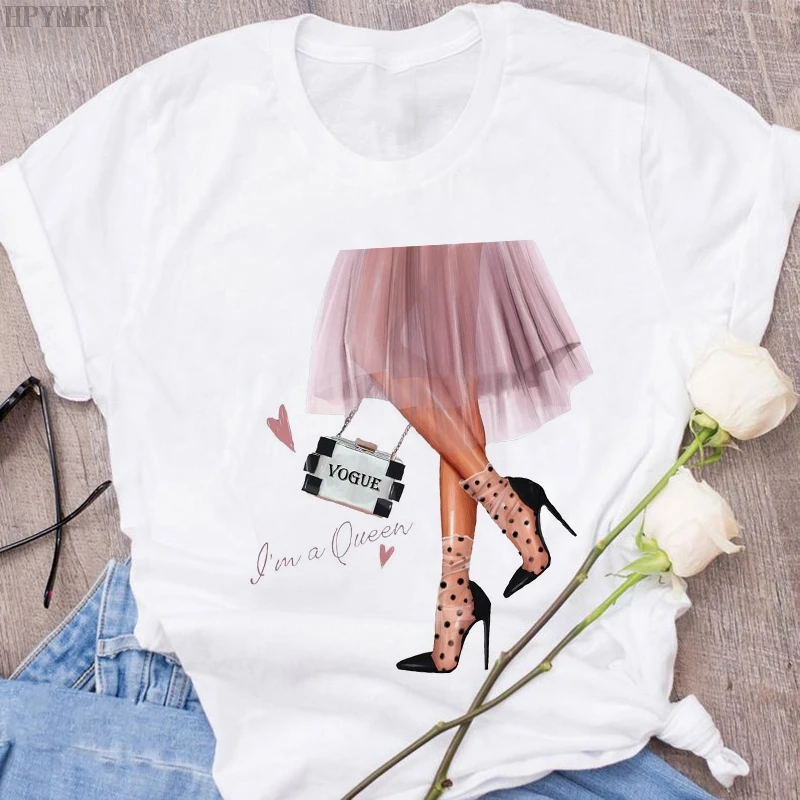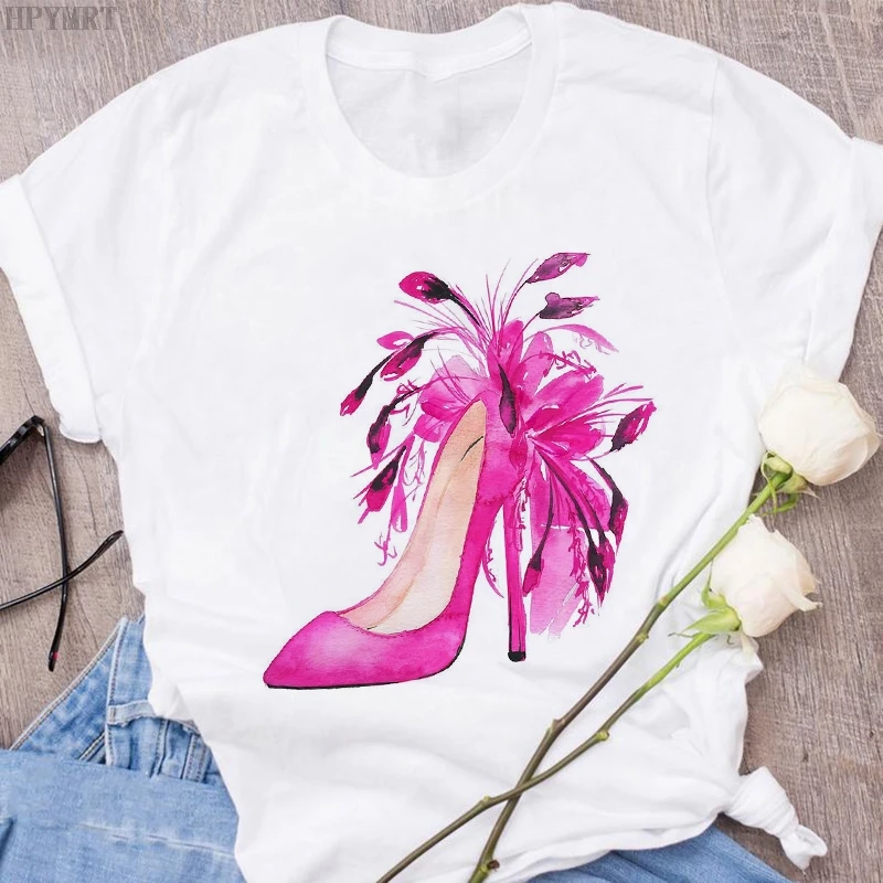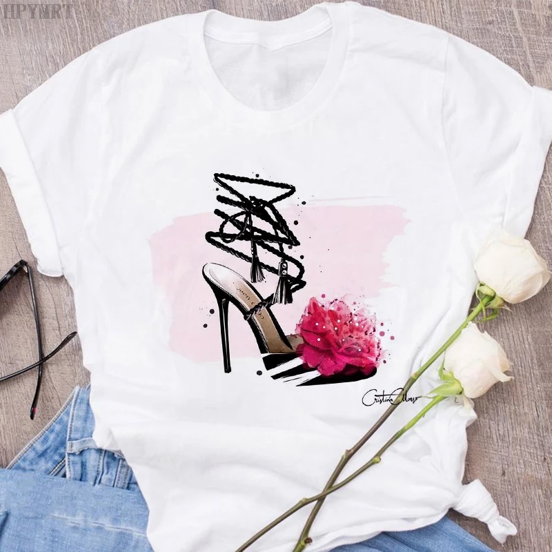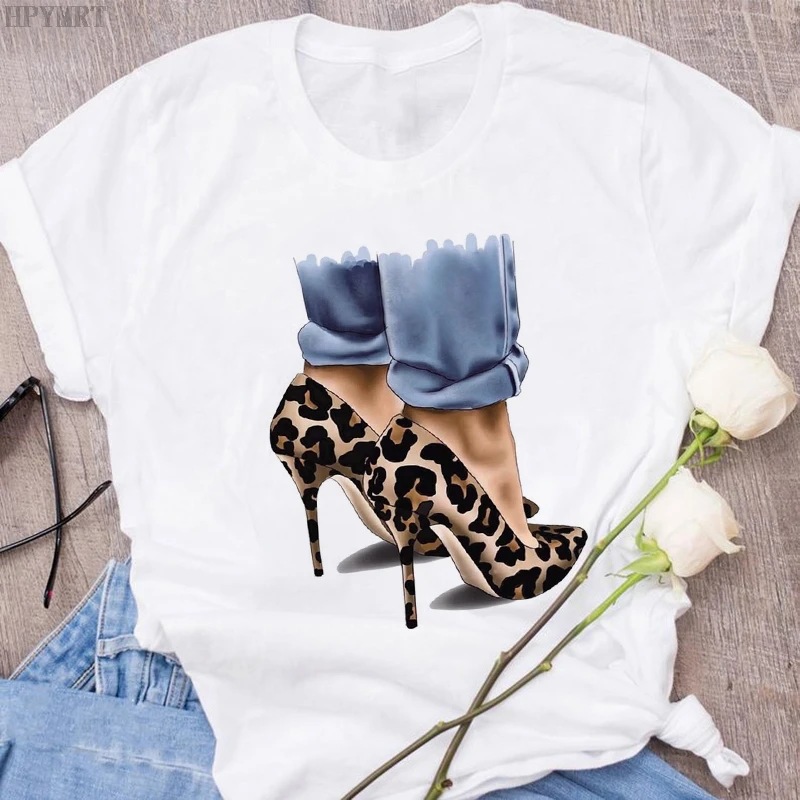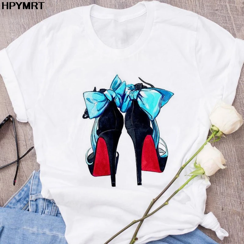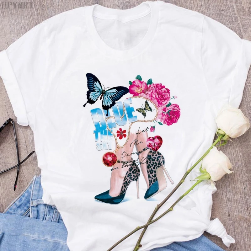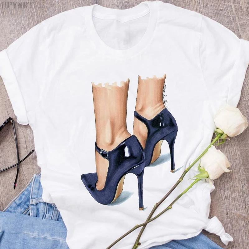 Летняя футболка на высоких каблуках, Повседневная белая футболка в стиле Харадзюку, блузки с коротким рукавом, женская модная футболка с рисунком