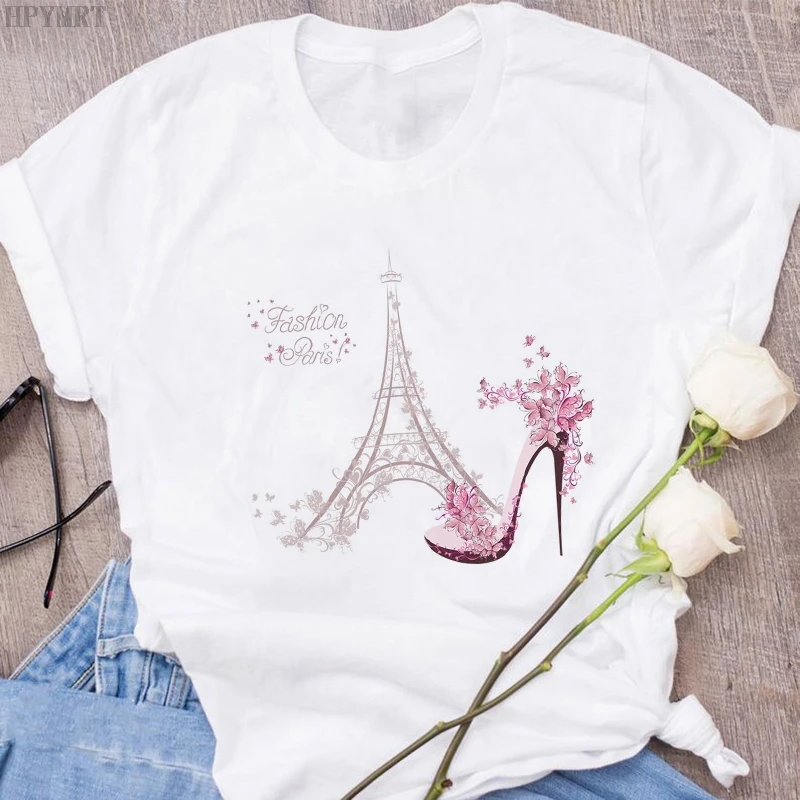 Женская футболка с принтом Эйфелевой башни, с коротким рукавом