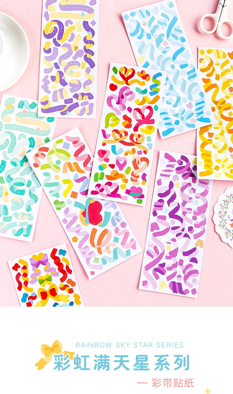 Наклейки радужные, для скрапбукинга, Блокноты с наклейками, 3 листаупаковка