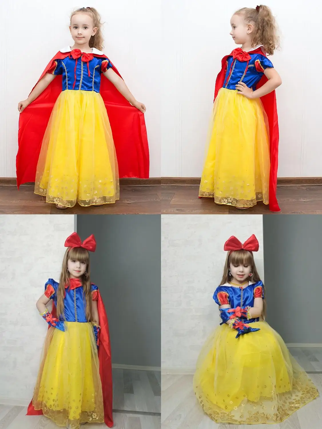 Платье принцессы белоснежное для девочек, детские костюмы с пышными рукавами и длинной накидкой, детское праздничное платье на день рождения