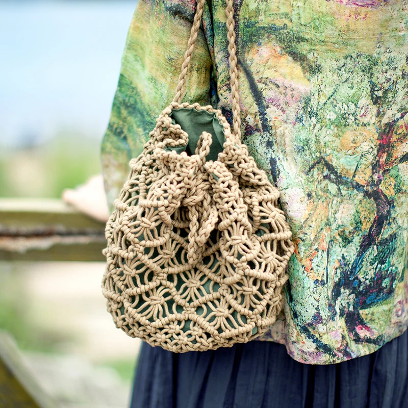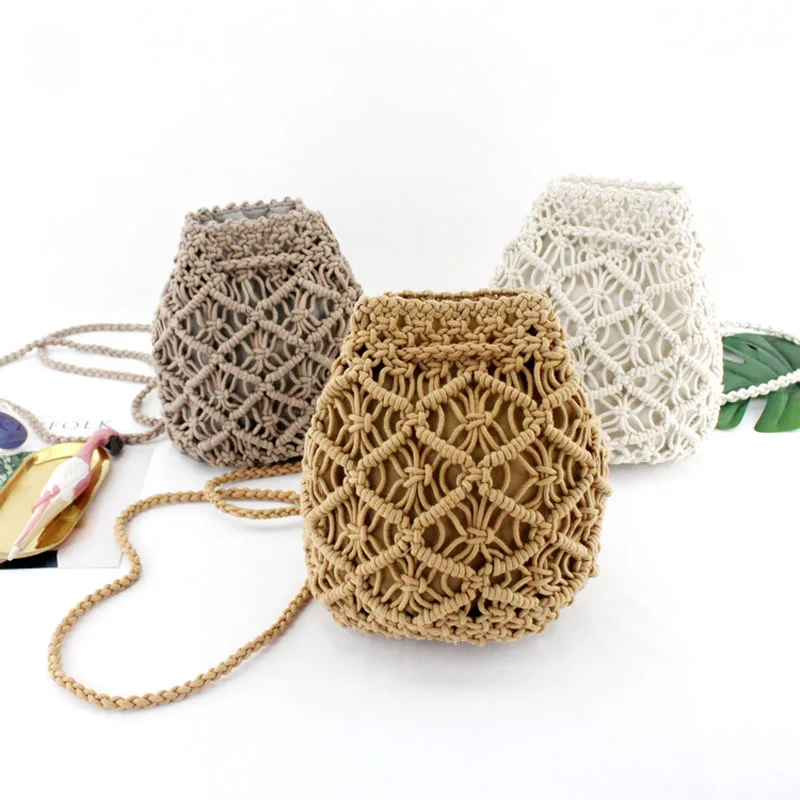 Модный винтажный Плетеный рюкзак, хлопковая веревка, маленькая соломенная сумка, для отпуска, путешествий, свежий рюкзак, сумки ручной работы C563568