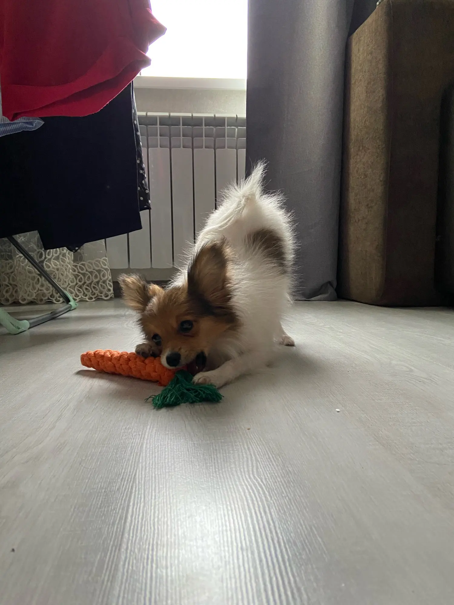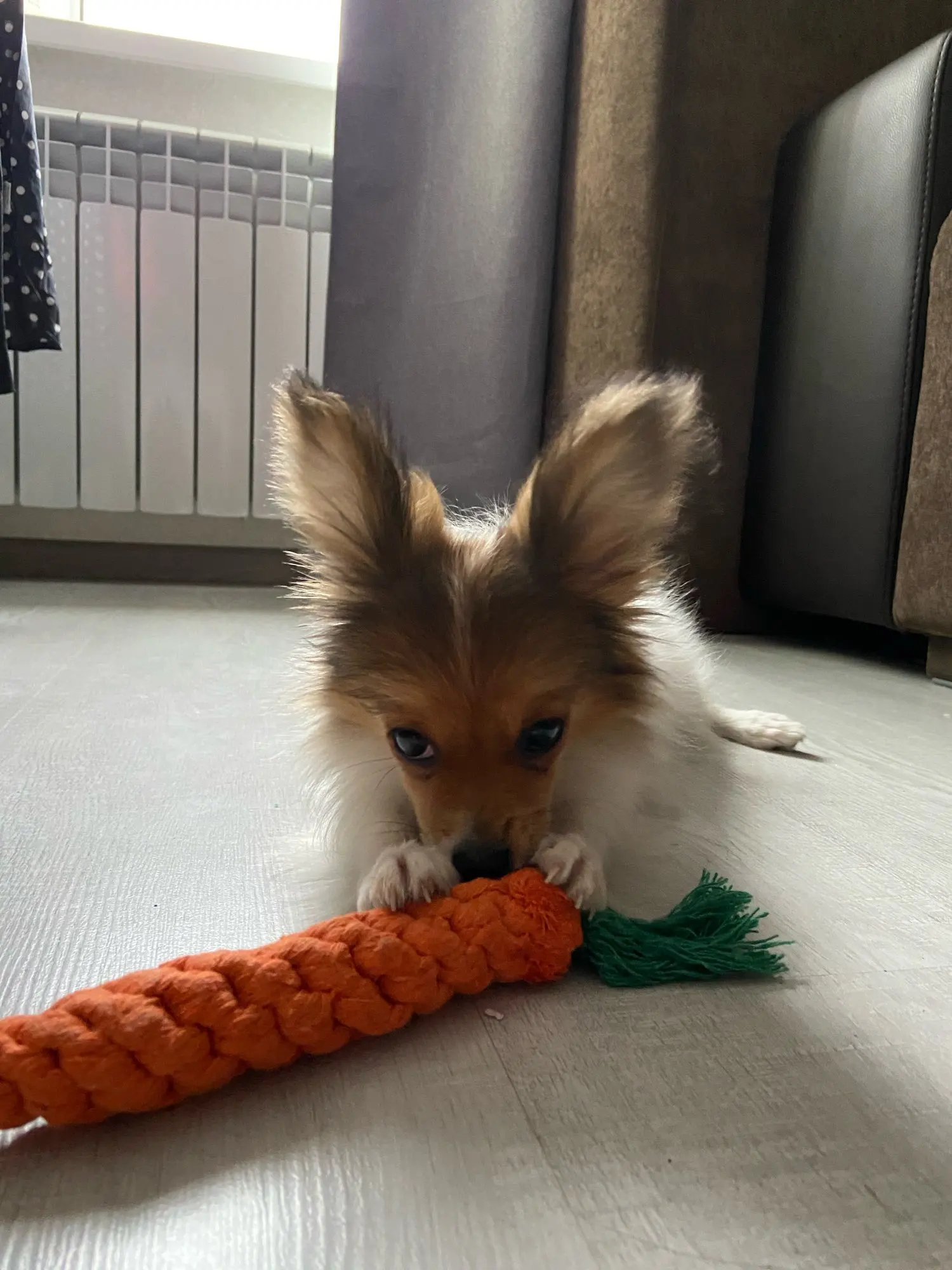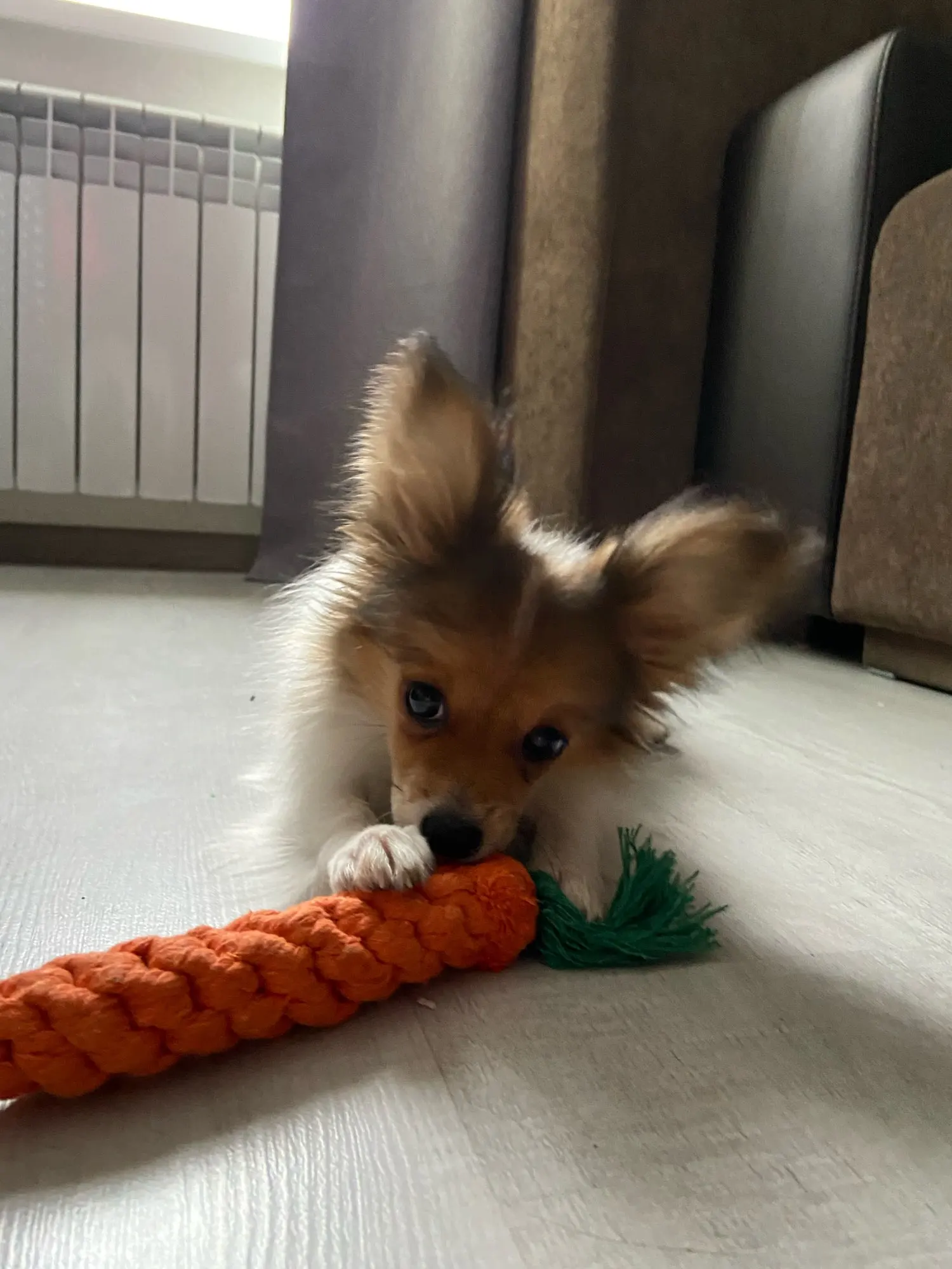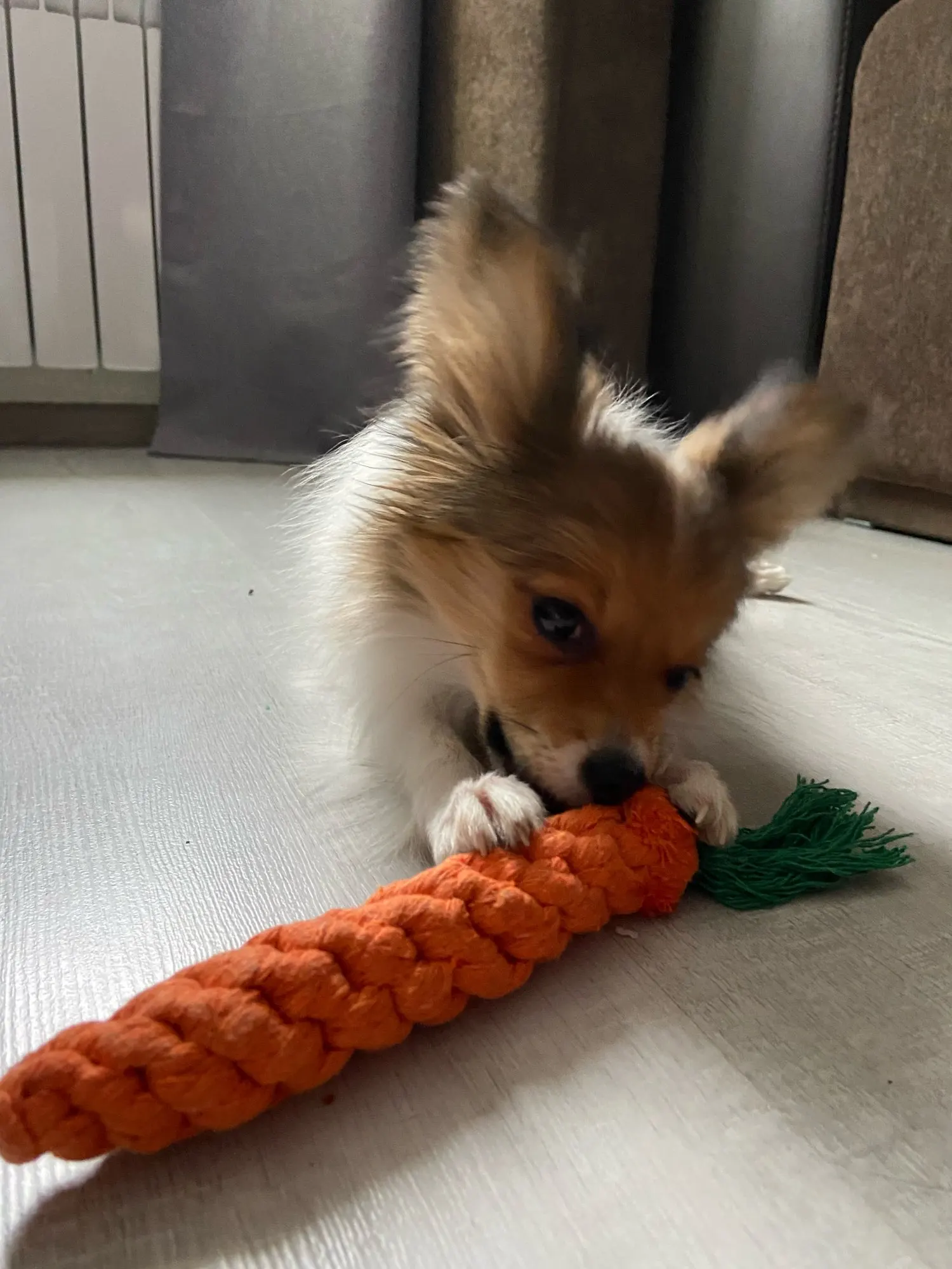 Корги 8 месяцев порвал игрушку за пол часа , довольно хлипкая.