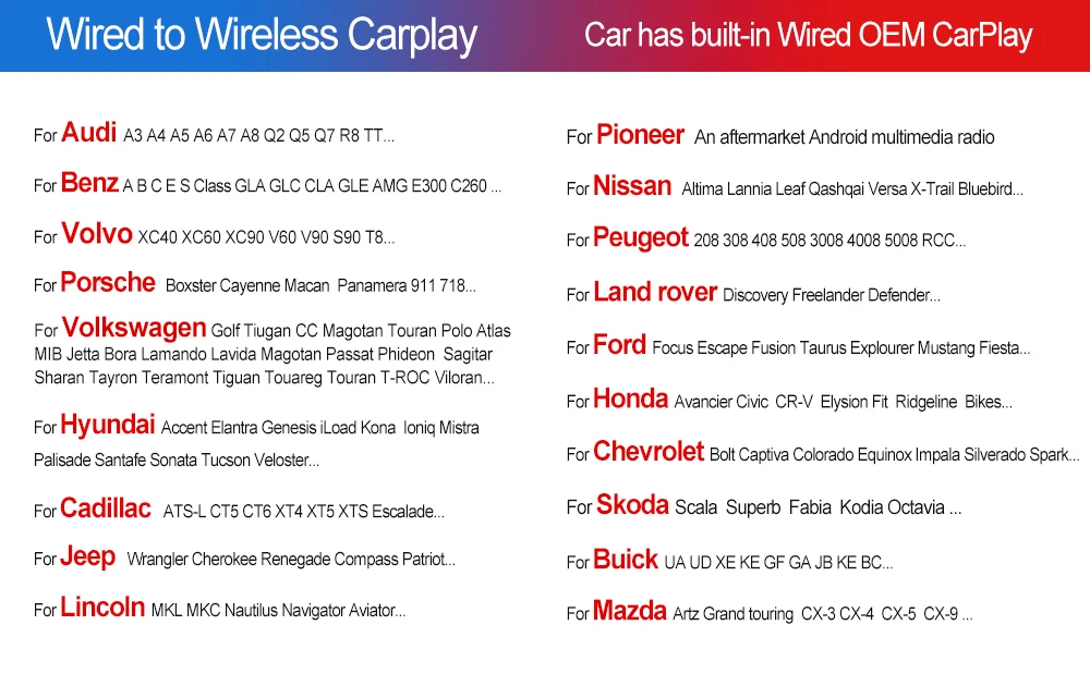 Support forCar models with OEM wired CarPlay