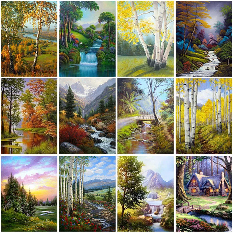 5D DIY Алмазная Картина Пейзаж камни в форме ромба, круглые фрезы, ...