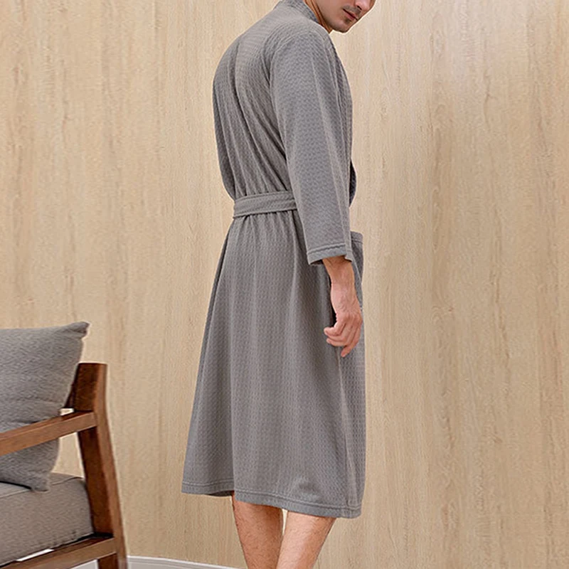 Халат вафельный прозрачный для мужчин и женщин, тонкий клетчатый халат для душа, ночнушка до колен, дышащая Домашняя одежда, лето