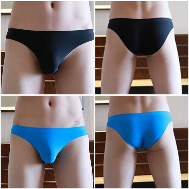 Мужское бесшовное нижнее белье, бесшовные трусы из ледяного шелка, низкая талия, микропрозрачное, цельное нижнее белье, молодежные модные штаны