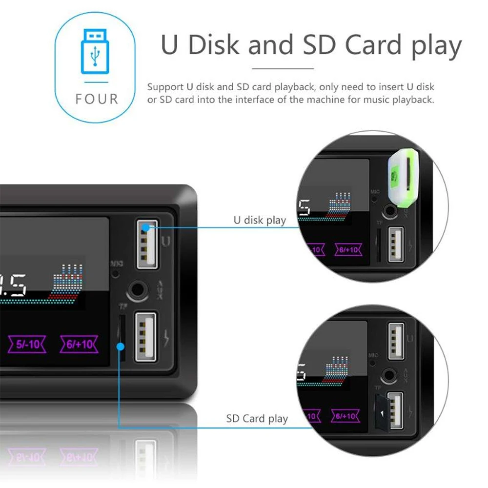 Наименование товара: автомобильный mp3-плеер Материал: пластик, металл Батареи: пульт дистанционного управления: Встроенный CR2025 150 мАч (в комплекте) Выходная мощность: 60Wx4 Bluetooth: поддержка Напряжение источника питания: 12 В Тип: M10 Модель декодирования: TY3510 Формат аудио: MP3/WMA/WAV/FLAC Интерфейс USB: USB2.0 Экран: VA Поддержка входа: AUX/sd-карта/U диск Fm-радио частота: 87,5-108 м Слот для карты: TF карта Радиочип: Встроенный чип Чип усилителя мощности: TDA7388 Модель экрана: LCD Вход AUX: Поддержка Размер: 18,8 см x 5,8 см x 6 см/7.4inx2.28inx2.36in