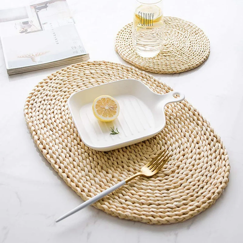 Плетеные салфетки из кукурузной соломы, овальные салфетки из ротанга, плетеные коврики для обеденного стола, натуральные салфетки для стола ручной работы, изоляционная подкладка (11,81