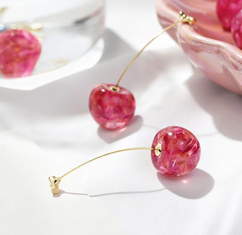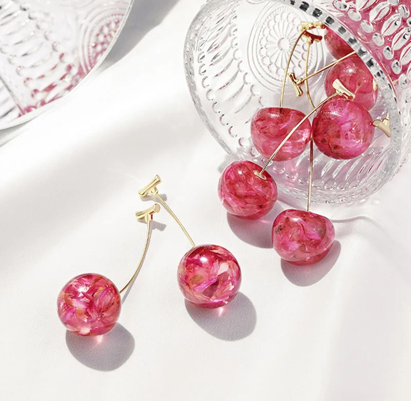 Корейские модные розовые вишневые серьги для женщин, подростков, девушек, оптовая продажа, милые полимерные висячие серьги, ювелирные изделия, подарки