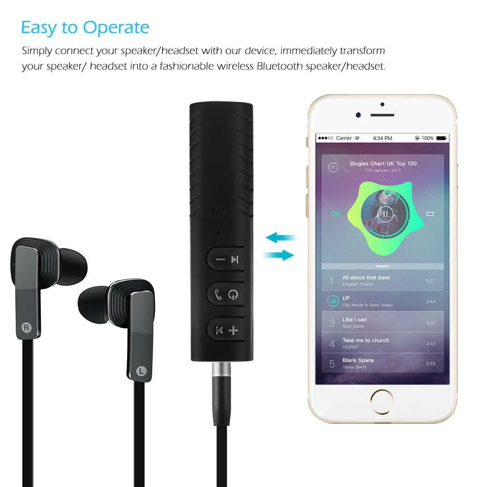 Мини Bluetooth аудиоприемник Bluetooth передатчик 3,5 мм разъем громкой связи Bluetooth Автомобильный. Комплект музыкального адаптера Bluetooth Автомобильный AUX этот Bluetooth приемник позволяет беспроводное прослушивание любого устройства с поддержкой Bluetooth. Он работает при подключении к динамику, наушнику или выбранной аудиосистеме и при подключении к музыкальному плееру через соединение Bluetooth. После сопряжения пользователи могут наслаждаться музыкой по своему желанию.