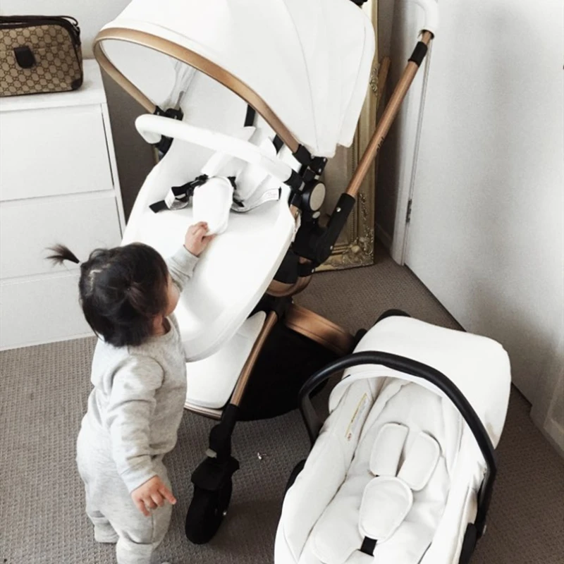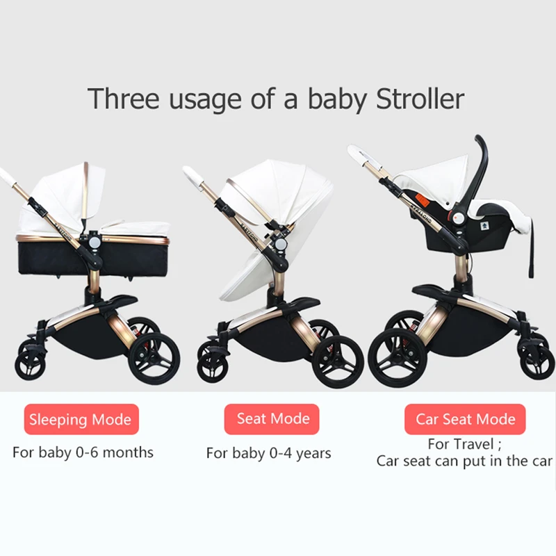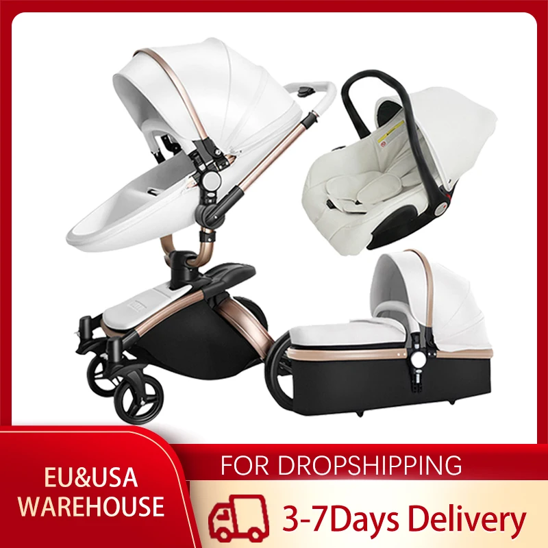 Детская коляска 3 в 1, бесплатная доставка, фирменная коляска из экокожи, детская коляска, Европейский стиль, автомобильное сиденье, корзина, люлька