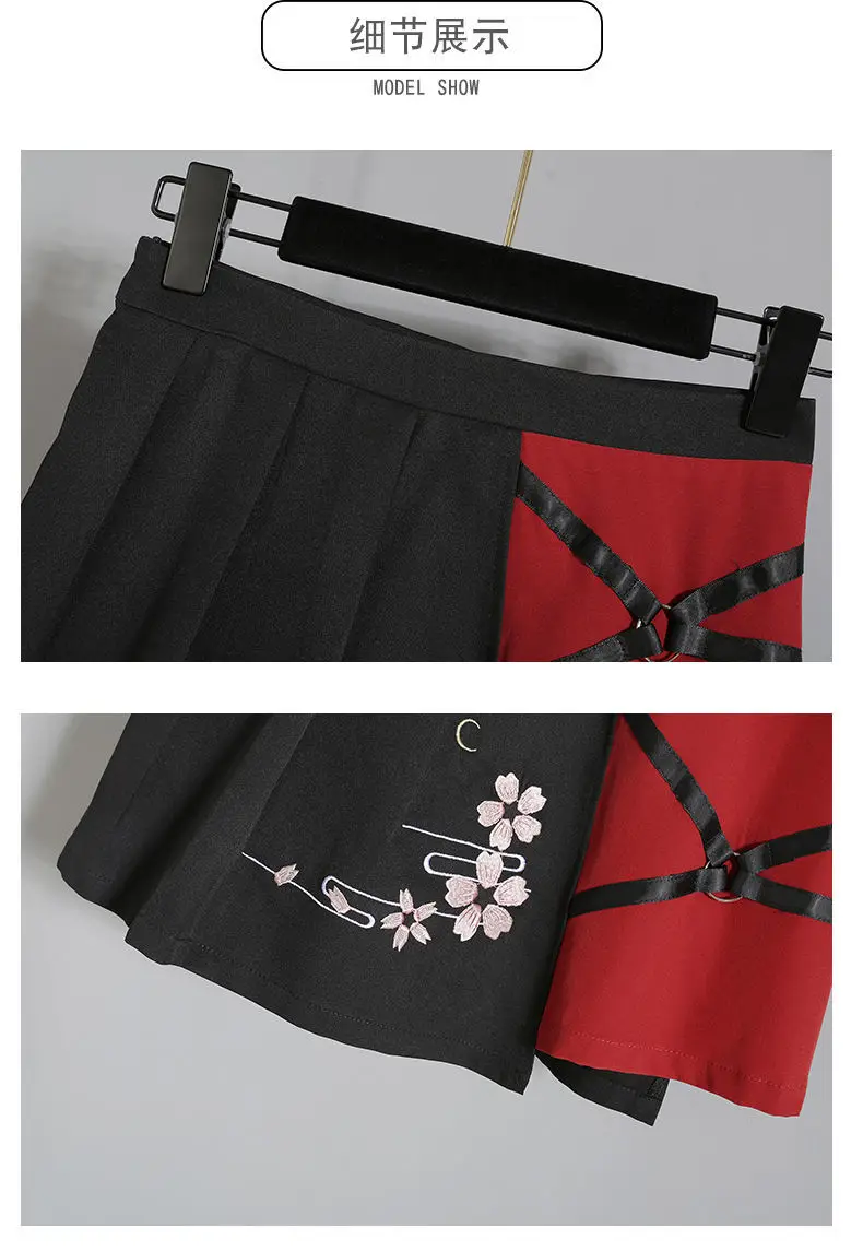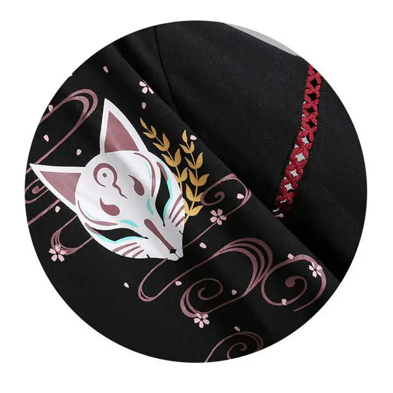 Женская короткая юбка в стиле аниме, комплект одежды из двух предметов с футболкой и красной лентой в японском стиле Лолиты для девочек, костюм ханьфу с лисой, лето размера плюс