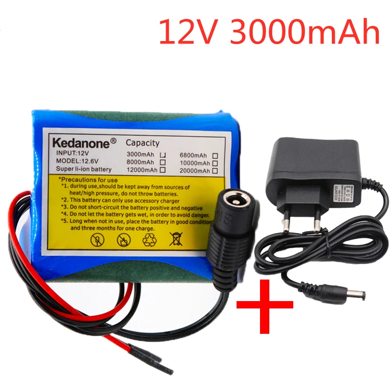 KEDAONE 12 в 3000 мАч 18650 литий-ионный перезаряжаемый аккумулятор постоянного тока, подходит для камеры видеонаблюдения, монитора, 3A батарея + 12,6 в