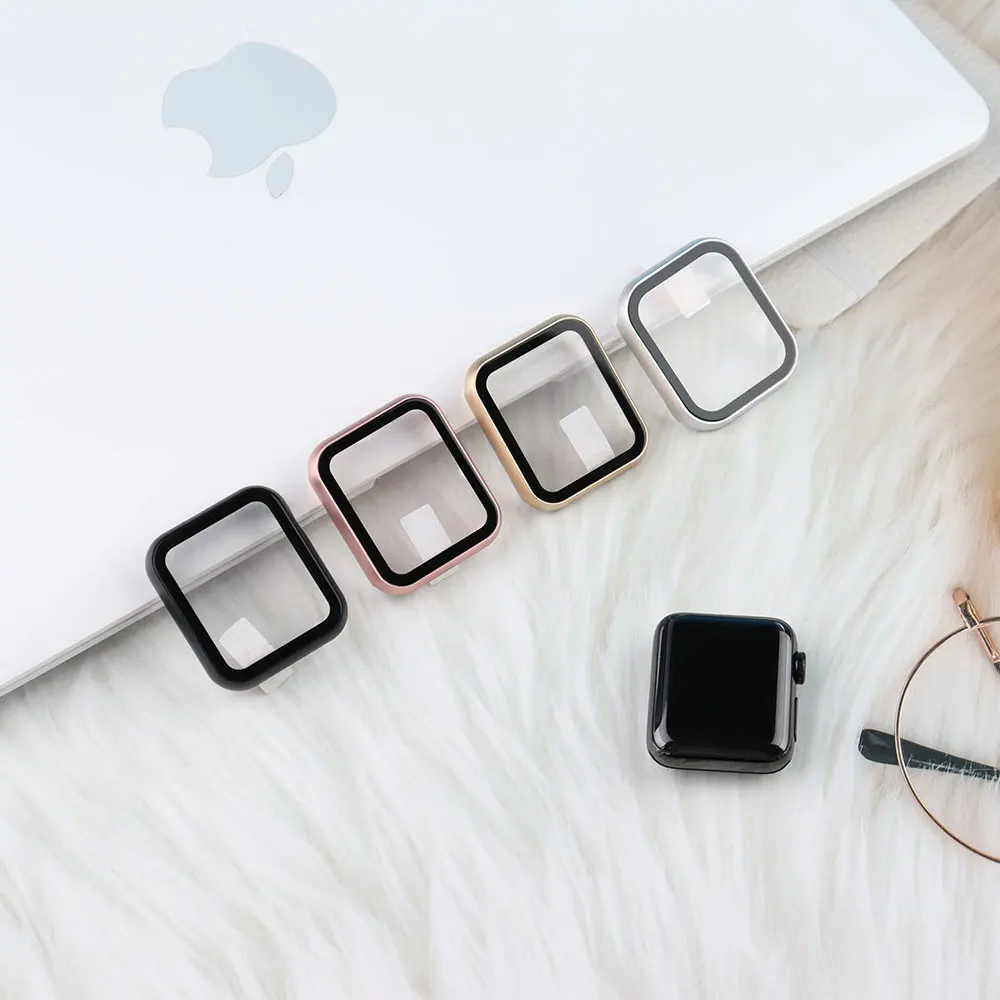 Стекло + чехол для Apple Watch серии 6, 5, 4, 3 SE 44 мм 40 мм наручных часов iWatch, чехол, 42 мм, 38 мм, версия бампер + защитное покрытие для экрана Apple аксессуары для часов