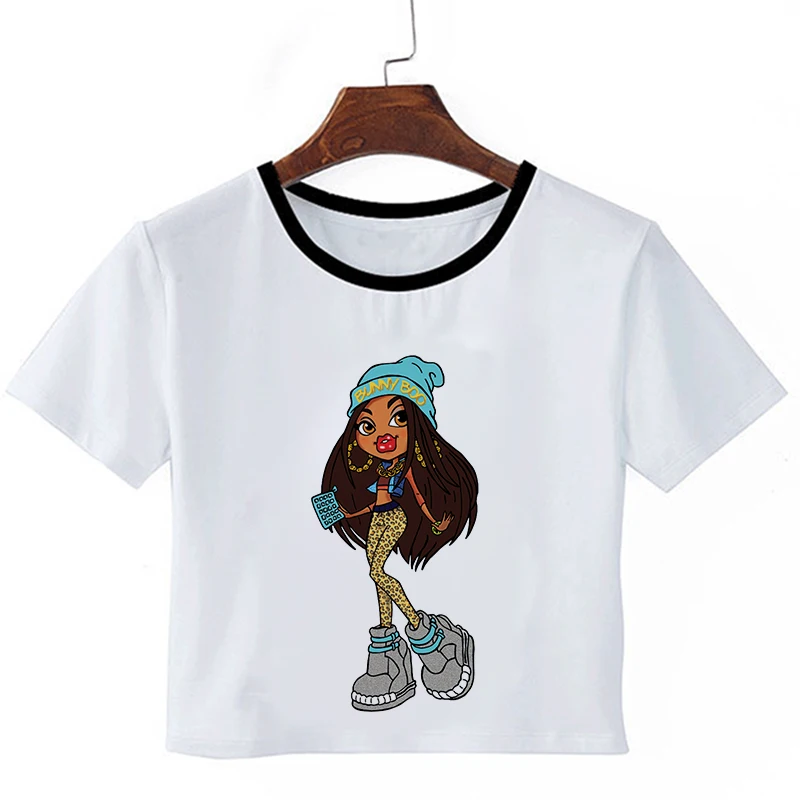 Женский топ из 90-х Винтаж Футболка Bratz Одежда Harajuku черный вы...