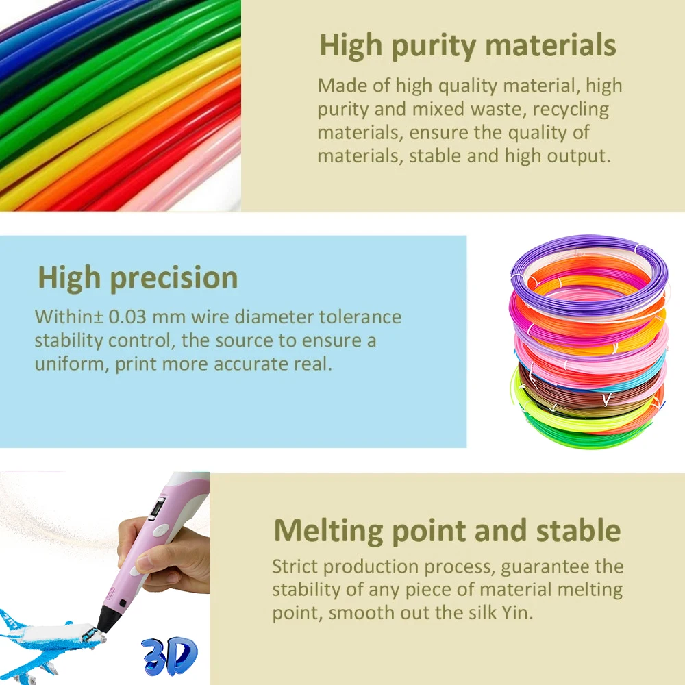 HooMore из пла-пластика для 3D ручка печати Пластик 1020 Цвет 5 м Д...