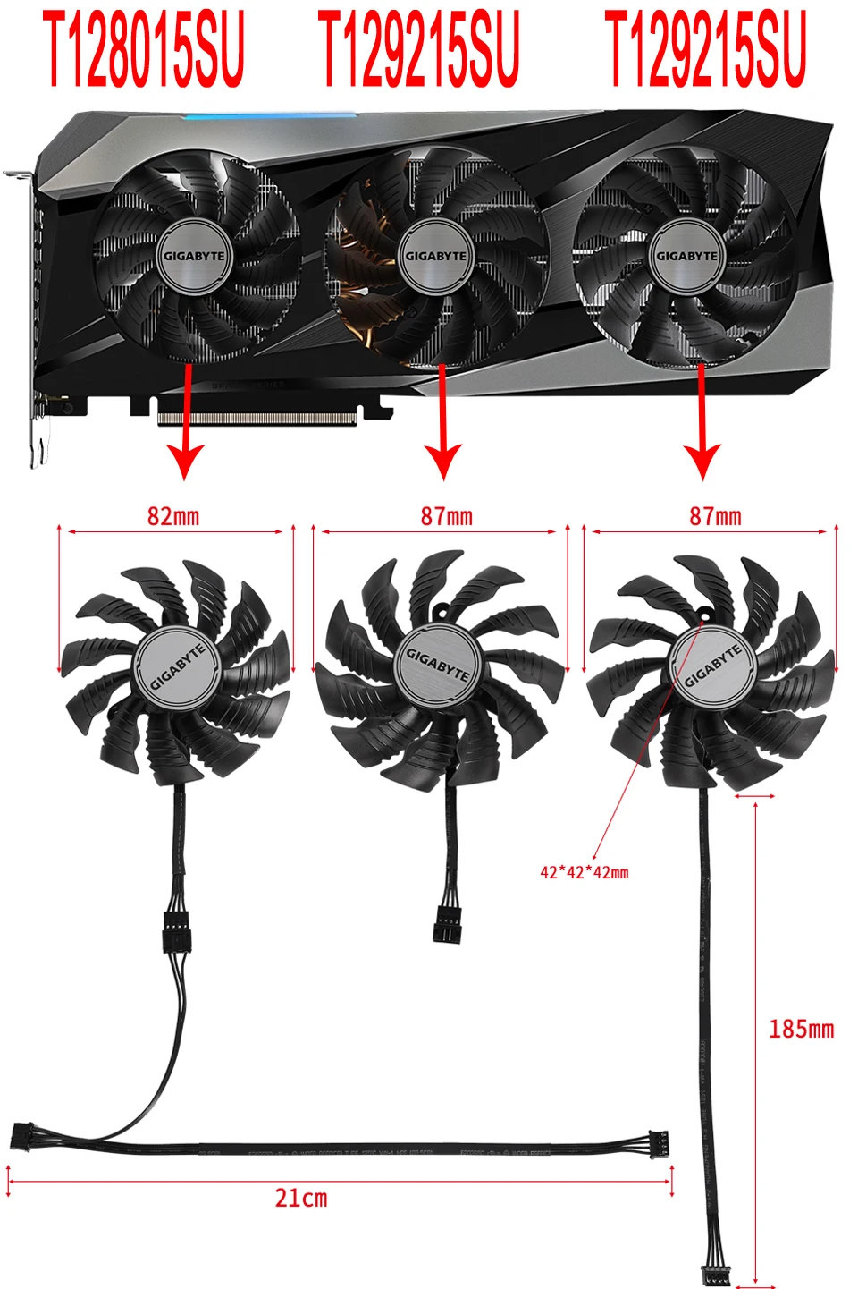 Новый 82 мм T128015SU 87 мм T129215SU охлаждающий вентилятор Замена для Gigabyte GeForce RTX 3090 3080 Ti 3070 Видеокарта охлаждения