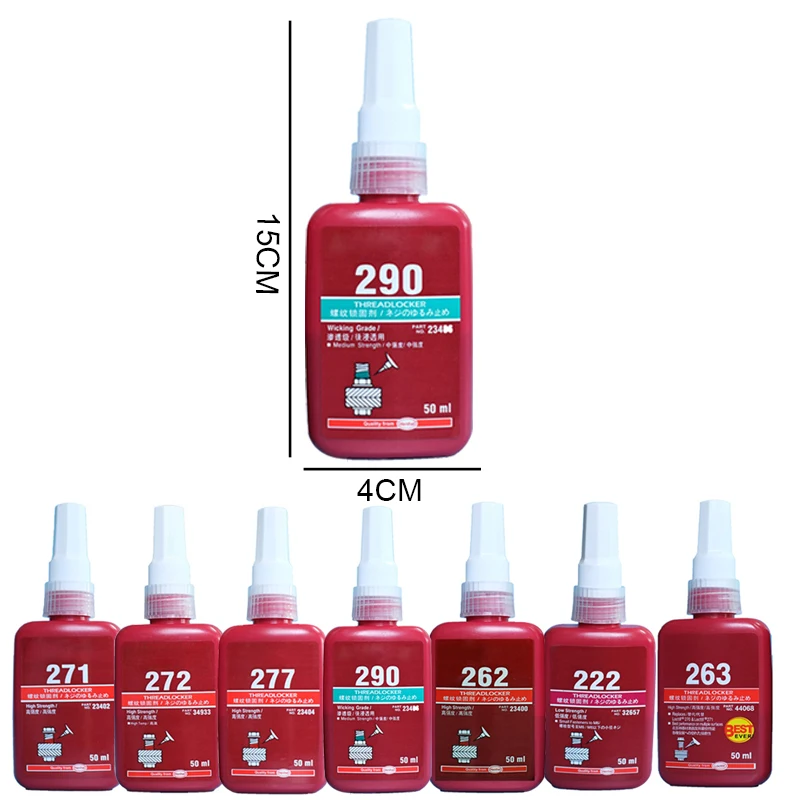 Описание:<Применение: универсальный, высокопрочный, средне-вязкий шкафчик для резьбы с улучшенной устойчивостью к маслу<Хорошая производительность: маслостойкое отверждение по мере получения крепежа без очистки<Функция: предназначена для блокировки и герметизации резьбовых крепежей<Применение: Идеально подходит для затягивания регулировочных винтов, винтов с потайной головкой и установочных винтов** Широко используется: в основном используется в электроприборах, электронике, авиационном оборудовании, автомобильной промышленности.