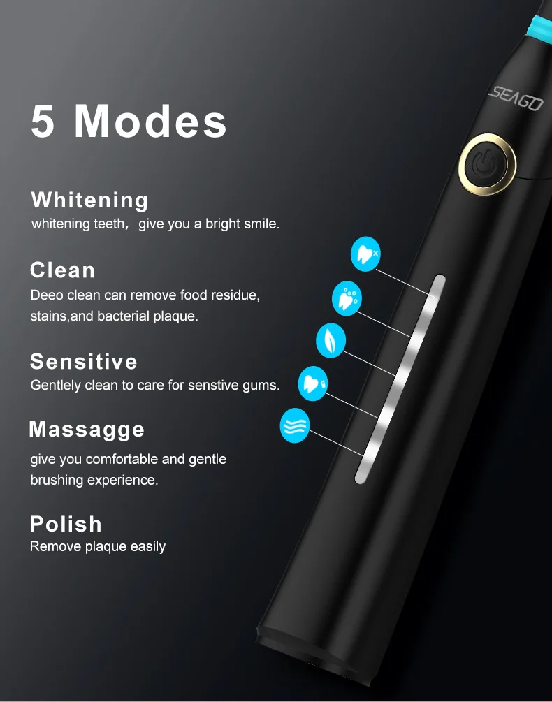 Зубная щетка Seago звуковая электрическая с чехлом, устройство для отбеливания зубов, быстрая доставка