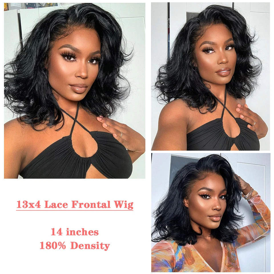 Короткие Волнистые кружевные фронтальные парики 13x4 человеческие волосы парики 14 дюймов Ali Annabelle бразильские человеческие волосы парики preplecked Hairline