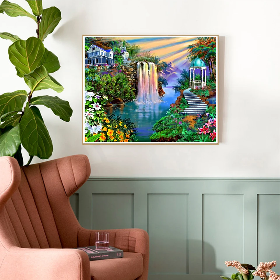 Картина для алмазной вышивки с изображением водопада, пейзажа